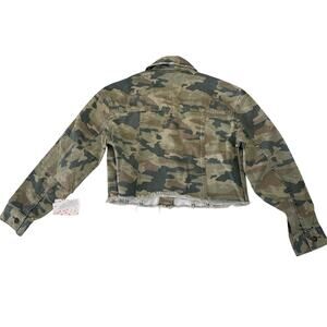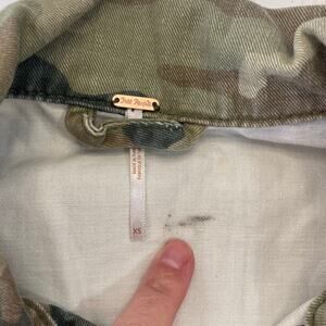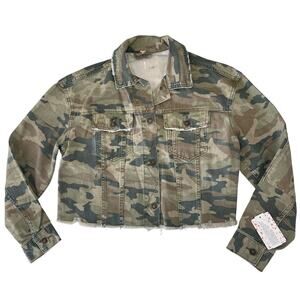 NWT Free People Camo Cropped Denim Jacket Raw Hem Size Womens XS