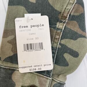 You'll love this NWT Free People Camo Cropped Denim Jacket in Women's XS! This stylish jacket features a trendy camo print and a flattering cropped silhouette. The raw hem adds a touch of edginess to the look. Perfect for adding a cool and casual vibe to any outfit!