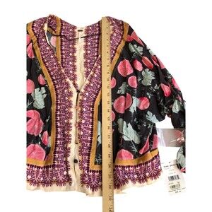 NWT Free People Cardigan Top Womens XS Abstract Artsy Print Tie Long Sleeve Boho