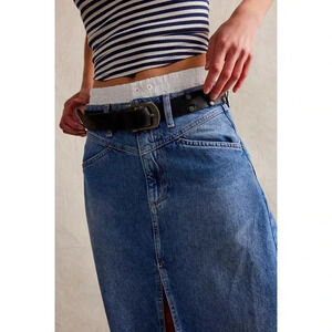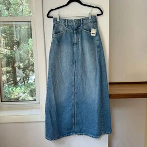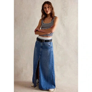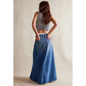 NWT Free People Come As You Are Denim Maxi Skirt Slit Sapphire Blue Jean