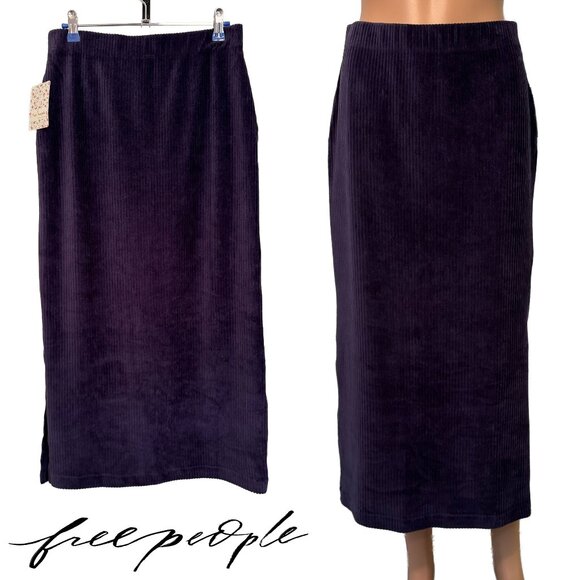 NWT Free People Corduroy Midnight Swim Purple Maxi Skirt Women’s Medium