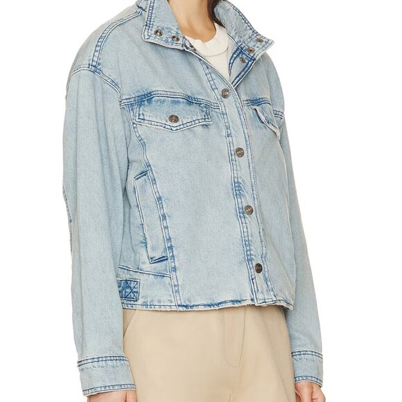 100% cotton. Made in Morocco. Machine wash. Front snap button closure. Breast flap and side slant pockets. Buttoned cuffs. Buttoned waist tabs. Revolve Style No. FREE-WO768. Manufacturer Style No. OB1674167.
