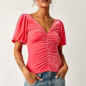 NWT Free People Cupcake Velvet Short Sleeve Top Size Large