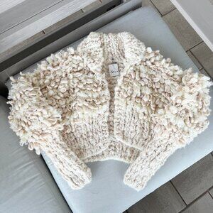 shaggy jacket, oversized jacket, chunky knit sweater jacket, shag, fur, loop, furry, unique, statement, loopy, Free People knit cardigan, Free People ivory jacket, chunky knit jacket, oversized cardigan sweater, ivory cream knit, shaggy knit jacket, cable knit cardigan, textured knit jacket, women’s small Free People, novelty cardigan, statement knit