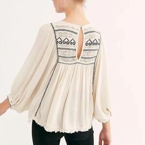 NWT Free People Cyprus Avenue Embroidered Top Sz L Ivory Boho