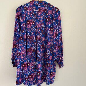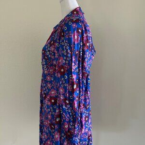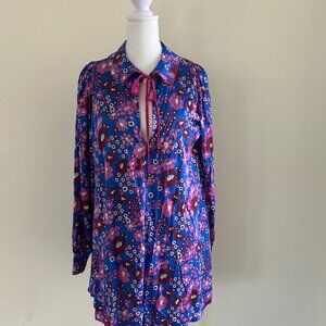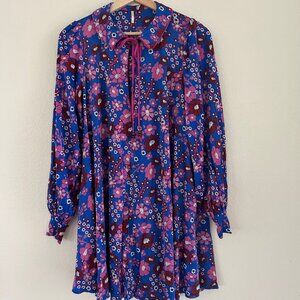 NWT Free People Daisy Jane Mini Dress Purple Floral Retro Tie Neck SXS Oversize
