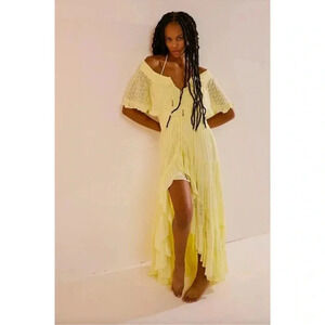 NWT Free People Dancing On Air Maxi Dress Summer Lace Flowy Boho Yellow