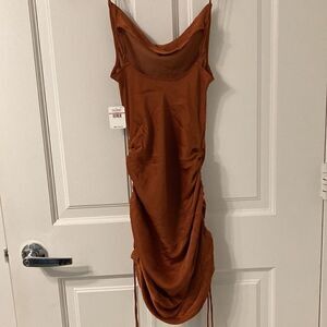 NWT Free People day to night adjustable slip dress. Draped scoop neck, adjustable spaghetti straps and drawstring ties at side seam that allow you to wear the dress short or long. Pullover style. 100 polyester.