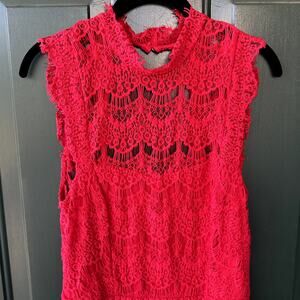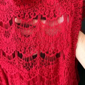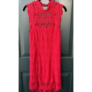 NWT Free People Daydream Sz M Bodycon Lace Mini Open Back Dress, Cherry Red