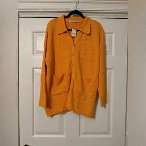 Stay cozy and stylish with this Free People Daydreamer Cardigan. Featuring a vibrant orange hue, this oversized cardigan is perfect for layering over your favorite outfits. It comes with a button-down front, ribbed texture, and large front pockets, making it as functional as it is fashionable. Whether you're lounging at home or stepping out for a casual day, this cardigan will keep you warm and chic.