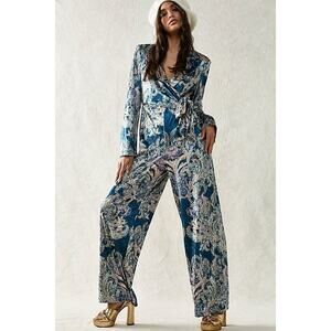 NWT Free People Delphine Velvet Jumpsuit $178 SMALL Blue