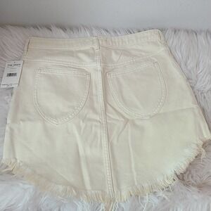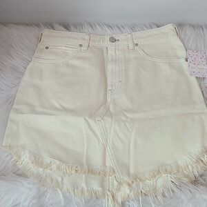 Color: Coconut 100% Cotton Imported Shell: 100% cotton Fabric: Mid-weight, non-stretch denim Wash cold Curved, frayed hem Length: 15in / 38cm