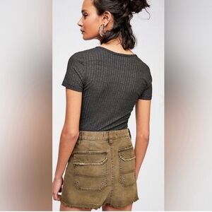 NWT Free People Distressed Denim Cargo Skirt Moss Size 25