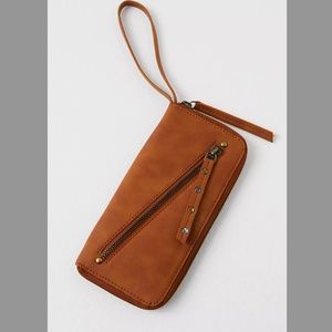 NWT Free People Distressed Vegan Wallet Wristlet Brown