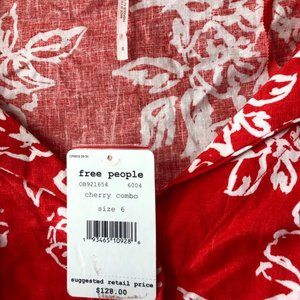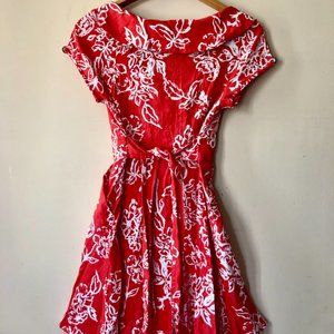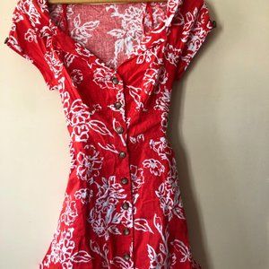 Gorgeous red and white detailed dress from Free People. It fit well except for the bust, I think it would work well with someone that has a small bust size. The buttons are super cute and the tie helps to make the dress look fitted no matter who is wearing it.
