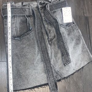 NWT Free People East of Eden Tie Waist Denim Skirt Washed Black Size 26