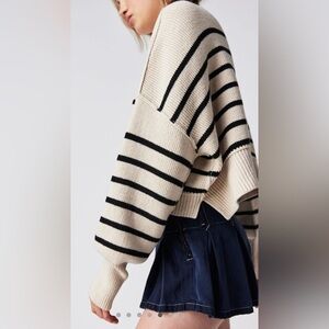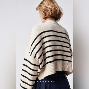 NWT Free People Easy Street Cropped Striped Pullover Oversized Sweater Size XL