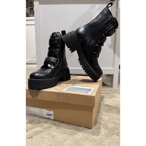 NWT Free People Emmett Lace Up Boot Black Leather Straps Lug Sole Zipper 37/7