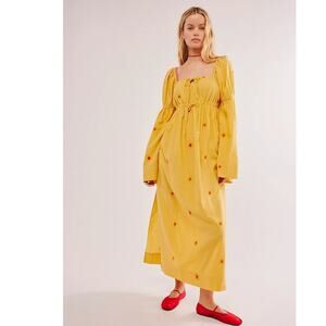 NWT Free People Emory Embroidered Midi Dress $168 SMALL Yellow