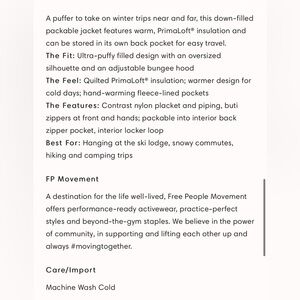 NWT Free People FP Movement Parker Packable Puffer Jacket - Size Medium