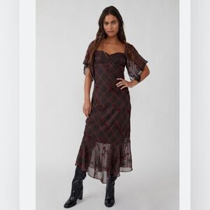 NWT Free People Fallen Flowers Midi Dress Embroidered Beaded size 0 Retr…