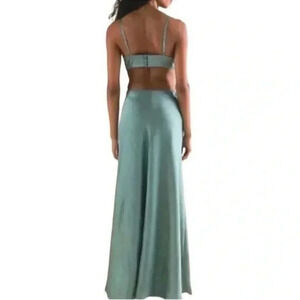 NWT Free People Fame And Partners Liv Satin Maxi Dress Cutout Blue Green