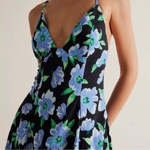 NWT Free People Finer Things Blue Combo Floral Tea Party Dress