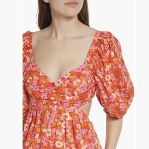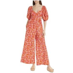 NWT Free People Floral Jumpsuit Amy Jumpsuit S Wide Leg Puff Sleeves Boho Gypsy