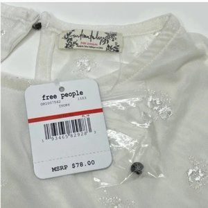 Very stretchy and comfortable Free People Floral Mesh Bodysuit. Size XS. Color: Ivory. New With Tags & extra button. Floral embroidery adds subtle romance to this alluring mesh bodysuit. Front is mesh lined but still see-through. Pair with a cute bralette you don't mind showing off or a white/cream tank underneath!