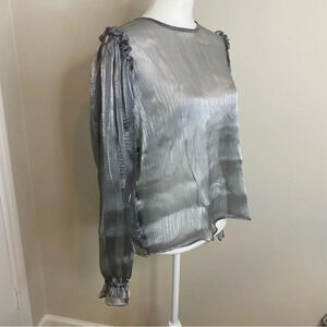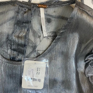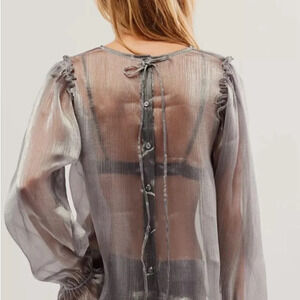 NWT Free People Freya Frost Top Metallic Silver Gray Sheer Long Sleeve Ribbon SP