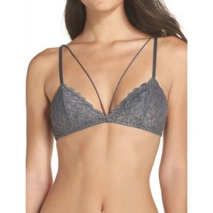 Intimately Free People Front Strap Triangle Bra Bralette Color - Carbon (Grey) Size - XS New with tags - retail $28 Stretchy lace triangle bra with adjustable straps and statement "V" strap design. Care/Import Hand Wash Cold Import Contents 88% Nylon 12% Spandex