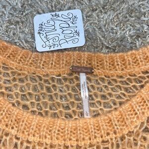 NWT Free People Fuzzy Crew Neck Alpaca Wool Open Knit Sweater Pullover Large Mango 8114