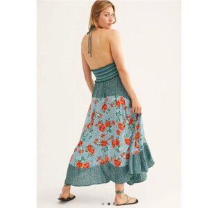 NWT Free People Gabriela Blue Combo Asymmetrical Midi Slip Dress