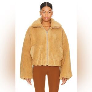 NWT Free People Get Cozy Teddy Full Zip Jacket in Camel Tan