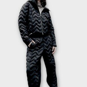 New with tag. Free People Gettin Lost Packable Pants Quilted Cozy Outdoors Winter Sz S. Designed for outdoor activities, these lightweight and insulated joggers provide warmth and comfort. Ideal for hiking, running, or cold-weather workouts and winter sports. Quilted chevron design for style and insulation. Zippered pocket for secure storage. Elastic waistband and cuffs for snug fit. Lightweight and warm with Primaloft insulation. Water resistant. Measurements taken across front with garment laying flat. Waist: 14.5" -17.5" Inseam 30". Total length: 40". Slightly oversized fit in legs. Condition: New With Tags