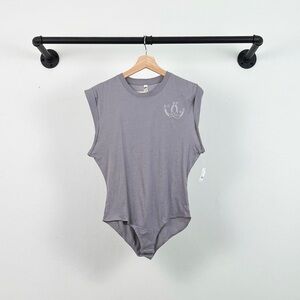 NWT Free People Go To Graphic Horseshoe Bodysuit In Grey