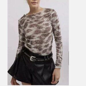 NWT Free People Gold Rush Sequin Top Medium, ALABASTER COMBO