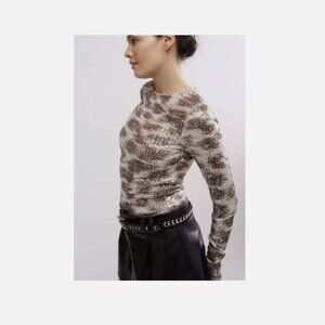 Turn heads in this close-fitting printed top covered in lustrous sequins.