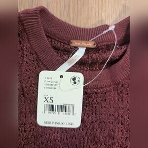 Women's Free People H2O Crew Pullover in the color "raw garnet" (a burgundy color) in size XS. Made with a very stretchy, comfy fabric and new with tags! (Originally retails for $98.)