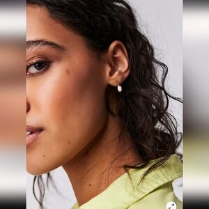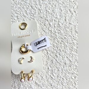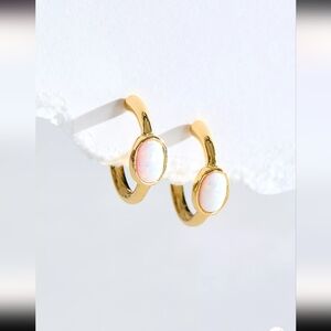 NWT! Free People, Halo Gold Plated Hoop Set, 14K Gold Plated,Gold/Opal -New -$78