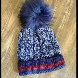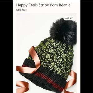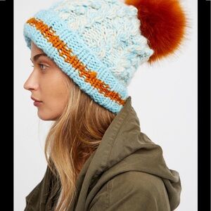 NWT Free People Happy Trails Stripe Pom Beanie Blue