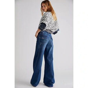 NWT Free People Harlow Mid-Rise Wide Leg Jeans We The Free Denim Blue 24
