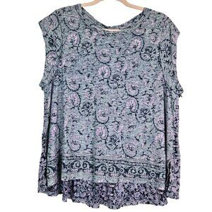 Love the flowy fit of this boho-printed top made from a soft cotton-modal blend and cut with slight sleeves