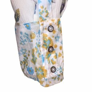 New with Tags- Free People Hold On to Me, Long Sleeve, Button Front Closure, Floral Printed Blouse with Sheer Side Panel and Three Button Cuffs. Gently frayed edges and shirred details.