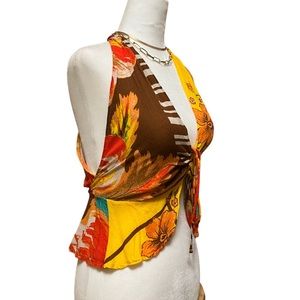Free People Hot Tropics Cinched Tank Top Halter V Neck Racerback SZ XS. Mango Combo. New with tag