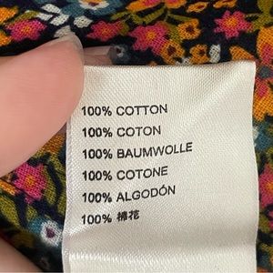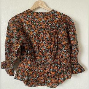 Gorgeous blooms bring romance to this breezy cotton blouse styled with ruffle-trimmed puff sleeves and a shapely V-neck.
