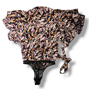 NWT Free People Intimately Call Me Later Bodysuit Sz. XS [0-2] Floral Paisley