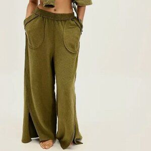 NWT Free People Intimately Chill Beat Lounge Pants In Sage Green Wide Leg Sz XS