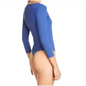 Free People Intimately Bodysuit Sapphire Blue Square Neck Long Sleeve Size Small