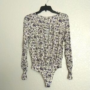 NWT Free People Intimately Kaya Print Cutout Bodysuit Ivory Combo Size Xs